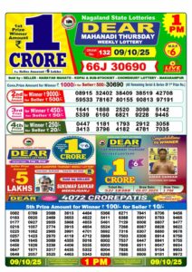 Dear Morning 1:00 PM TicketsDay Ticket NameMonday Dear Dwarka Monday WeeklyTuesday Dear Godavari Tuesday WeeklyWednesday Dear Indus Wednesday WeeklyThursday Dear Mahanadi Thursday WeeklyFriday Dear Meghna Friday WeeklySaturday Dear Narmada Saturday WeeklySunday Dear Yamuna Sunday WeeklyDear Morning 1:00 PM PrizeRank No. of Prizes Prize Amount (in ₹) Super Prize Amount (in ₹)1 1 99,00,000 1,00,000Cons. 579 1,000 5002 5800 9,000 5003 58000 500 504 58000 250 205 580000 120 10